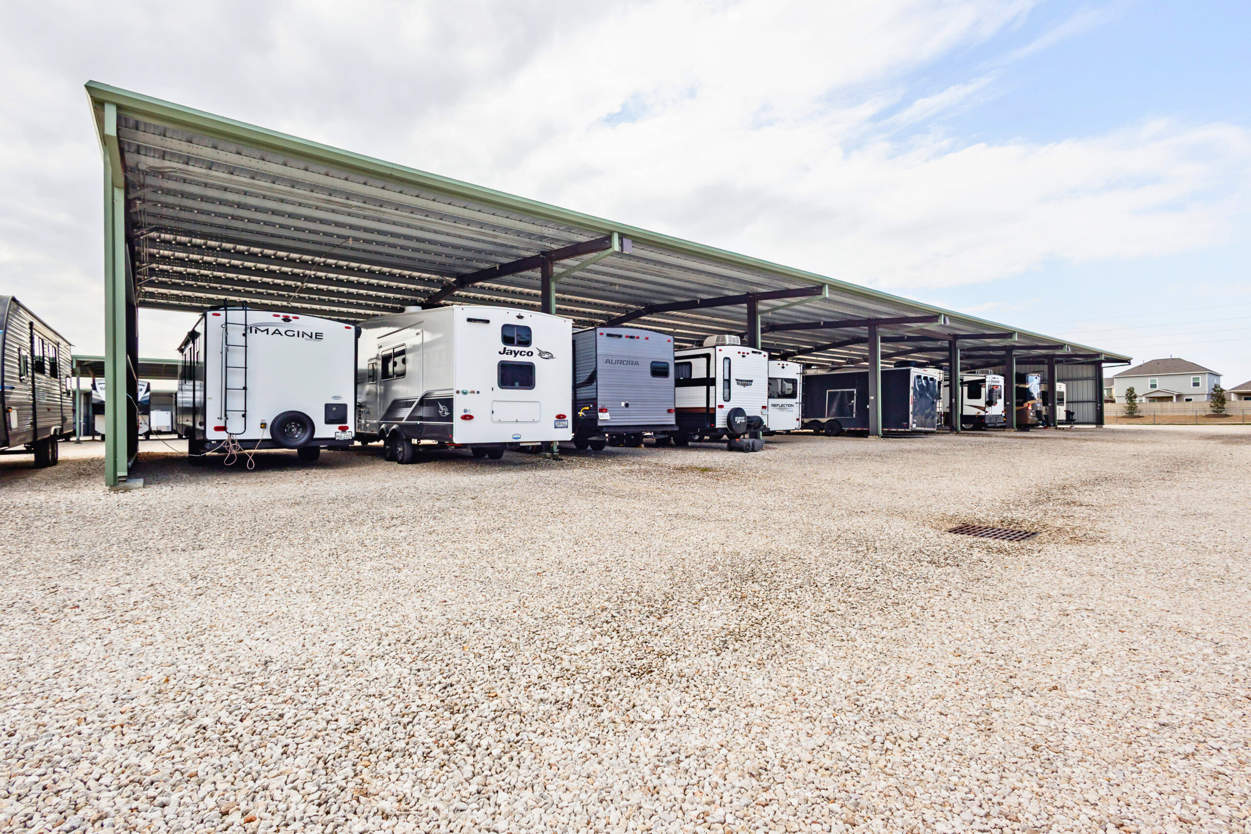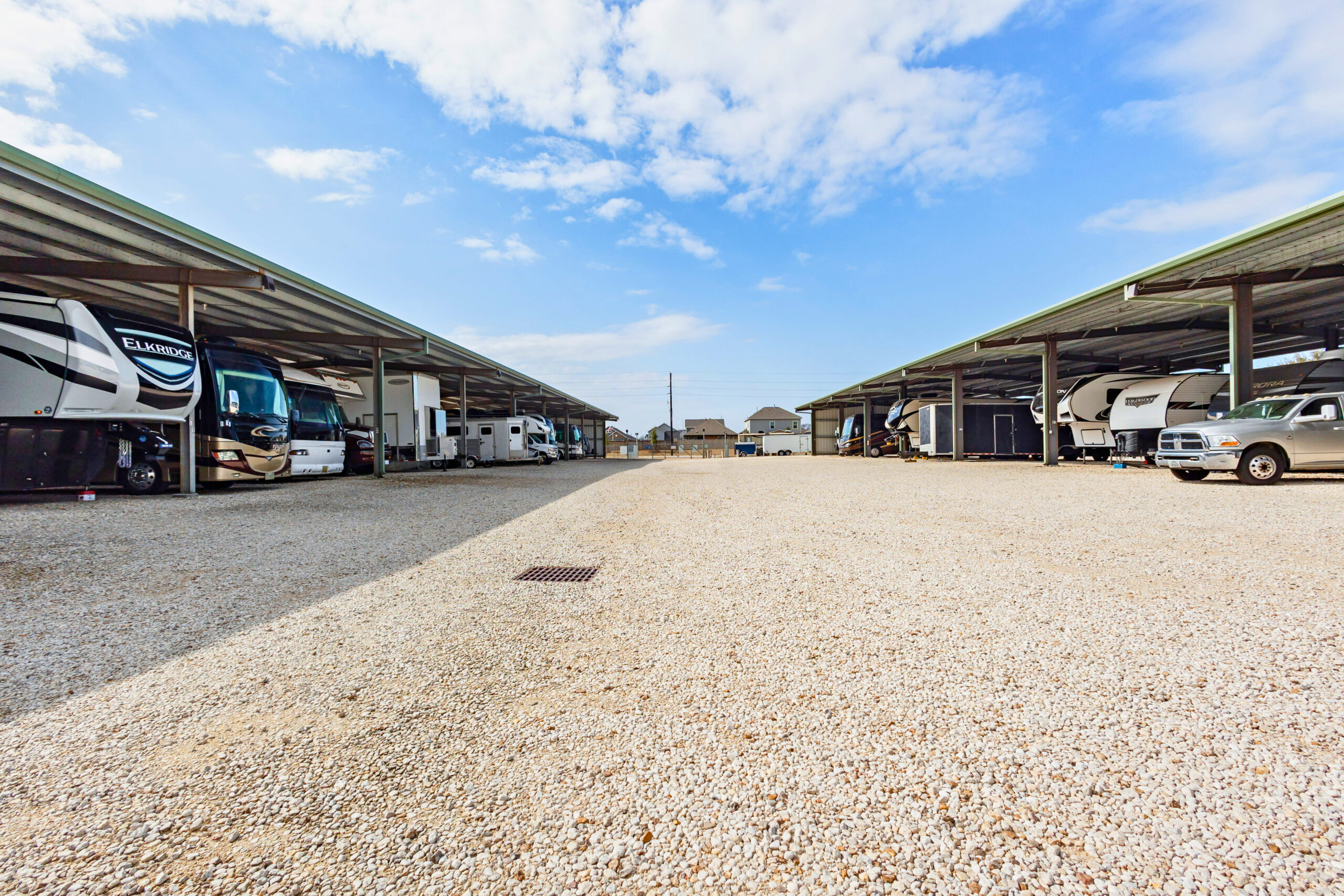 This facility offers covered storage spaces designed for boats, RVs, and trailers. Wide drive aisles and a simple layout help reduce difficulty when parking or retrieving larger vehicles.
